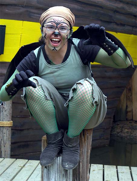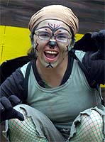 Name: Alyssa M. Shade... the M. according to my mom stands for Maureen but to every one else it stands for Monkey Birthdate: 11-23-86 Reason you joined the Stunt Show: i guess one of my random acts. How many grueling hours has Craig made you work on the show?: roughly 524.3 not that i'm counting or anything Favorite Stunt: getting thru the stage with my wings on What advice would you give someone playing your part?: if you happen to wear glasses dont give them to Laura. Favorite Line from any of the shows: "This water tastes like pee!!" Favorite fight partner in a show: hmmm its a toss up between Craig and my crash pole. Favorite Character From a Movie: Mortemor Brewster from Arsenic and Old Lace. I loved Cary Grant in that role (yes i like to watch classic movies) Favorite Food: mushrooms If you were stranded on a desert Island with 1 other person, who would you prefer to be with?: Billy Boyd!!! No, really: ok my friend the great James Stanly Wynn. because he always finds interesting ways out of a situation. or at the very least comical. If you could bring one luxury item, like in "Survivor", what would you bring?: A pirate ship and crew. If you could have the power of 1 superhero, what would it be?: morph in to diffrent things If you were going to play a superhero in a movie, who would you want to be directed by?: Peter Jackson If you could kick one person's butt on the planet and get away with it, who would it be?: a certain girl who is dating on of my guy friends....i think some of you know who it is... Words to live by: life is a feast, enjoy it, most poor suckers are starving to death. Acting/Technical experience: 4 years in drama class Before I die, I want to: move out of my parents house and move out of state Any extra tidbits you want to offer: Nuke 'em till they glow, then shoot 'em in the dark. |