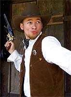 Name: Evan Cannon Birthdate: 4-12-82 Reason you joined the Stunt Show: Because I decided I needed to spend more time in 100+ degree weather. How many grueling hours has Craig made you work on the show: one too many, but not quite enough. Favorite Stunt: crashing into a pile of rocks and hearing the audience gasp. What advice would you give someone playing your part?: Refuse to take my place and tell everyone, "It would be a travesty to try and duplicate such a spectacular performance as that of the incredible Evan the Great!" Favorite Line from any of the shows: "Hey, that doesn't go there." Favorite fight partner in a show: The one that doesn't poke me in the face with a sword. Favorite Character From a Movie: The baby in "Eraserhead". If you were stranded on a desert island with 1 other person, who would you prefer to be with?: Milla Jovovich No, really: MILLA! If you could bring one luxury item, like in "Survivor", what would you bring?: Milla Jovovich. If you could have the power of 1 superhero, what would it be?: The ability to make people vomit on command! If you were going to play a superhero in a movie, who would you want to be directed by?: Ed Wood Words to live by: The sleeper must awaken. Acting/Technical experience: A lot. Achievements: You'll see! Any extra tidbits you want to offer: When all else fails, move to California and become a rock star. |