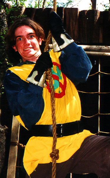 Name: Jeremy Welch Birthdate: January 15th, 1983 Reason you joined the Stunt Show: I had nothing better to do and decided that falling off of things sounded like fun (a bit typecast, but fun) How many grueling hours has Craig made you work on the show?: Enough, but I'm always about an hour late, so subtract an hour a day. Favorite Stunt: Falling over the wall and listening to all the noise on the way down (all 2 minutes of it) What advice would you give someone playing your part?: Make sure you set right for the groin kicks! Favorite Line from any of the shows: "There's a two-dollar French whore in there?" "Yeah, she fell on top of me!" Favorite fight partner in a show: Terrie (she recovers well when I make a mistake) Favorite Character from a Movie: Ardith Bay (the kickarse Medjai from the Mummy and its sequel) If you were stranded on a desert island with 1 other person, who would you prefer to be with?: Robinson Crusoe No, really: Probably Nathan. Not only is his head full of useless survival information, he's about the only person with whom I know I can get along indefinately If you could bring one luxury item, like in "Survivor", what would you bring?: Satellite Cel Phone If you could have the power of 1 superhero, what would it be?: I think I'd like to be able to cloud men's minds like the Shadow (though I might not restrict myself to men) If you were going to play a superhero in a movie, who would you want to be directed by?: George Lucas, hands down If you could kick one person's butt on the planet and get away with it, who would it be?: Words to live by: "Any job worth doing is worth doing right." Acting/Technical experience: No previous acting experience to speak of (I've always preferred working on a production! :) 6+ years sound/light/general tech work in theater and music Achievements: Staying alive for 18 years (hey, when your hobbies include falling more than 5 feet on a regular basis, that's an achievement!), learning to speak Spanish, learning to play the guitar, mandolin, and bass within the same year Any extra tidbits you want to offer: To enjoy life to its fullest, take big bites. |