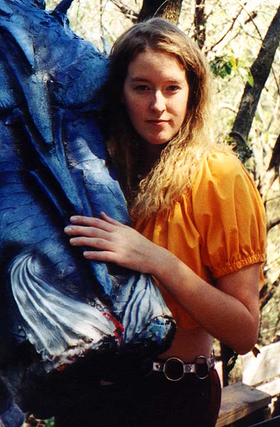 Name: Laurel Bryant Birthdate: 9/1/76 Reason you joined the Stunt Show: I needed a social outlet How many grueling hours has Craig made you work on the show: Way too many to count Favorite Stunt: Anything involving ziplines or people falling off ziplines What advice would you give someone playing your part?: Turn off the mic when you have to laugh Favorite Line from any of the shows: "I brought the buns" D.A.S.S. 2000 Favorite fight partner in a show: Favorite Character From a Movie: Wesley (Princess Bride) If you were stranded on a desert island with 1 other person, who would you prefer to be with?: A fat, hairy slob - NO, wait, I divored him already. No, really: Some heterosexual, sane, male with little to no body hair with survival skills If you could bring one luxury item, like in "Survivor", what would you bring?: TAMPONS If you could have the power of 1 superhero, what would it be?: The ablity to fly If you were going to play a superhero in a movie, who would you want to be directed by?: The director(s) of "the Matrix" If you could kick one person's butt on the planet and get away with it, who would it be?: My ex Words to live by: What ever you do, don't ask me for directions. Acting/Technical experience: D.A.S.S. 2000 - Tech and one performance fill in for "Dirk" Hawkwood 2000 - cast "Bertha" Hawkwood Twisted Tales Theatre 2001 - performer "Lady Wool" D.A.S.S. 2001 - Sound tech & voice of Yokho ("OH, NO!") Achievements: Where do I start...........Oh, there's just too many to try to make up. Any extra tidbits you want to offer: |