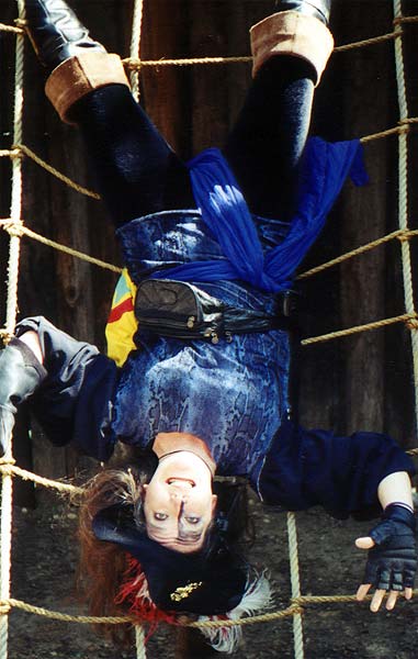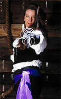 Name: Squat,no, Black Pete, no ummm Hawkeye, no that's not right either, OH Yohko! Oh no, that isn't it, Oh Sheryl Brooks (Glad Craig can keep it straight) Birthdate: AH! I know this one! May 15 Reason you joined the Stunt Show: (Damn that party!) How many grueling hours has Craig made you work on the show: Eleven times more than anyone else? Yeah, back-up, "It will be easier" HA! 8) Hehe, more like stunt double. Favorite Stunt: One's I actually complete successfully! Glad to see Craig thinks I can do anything, either that or he's trying to kill me. Or he just wants to laugh at me at the attempt. Wish I was as good at making smoke rings with the cannon like Cannonball. What advice would you give someone playing your part?: Go for the fixed part, You won't have an identity crisis then. Ah, and this year I got to feel up the lizard! (No, I'm not into Dragon Booty!) Favorite Line from any of the shows: Lines? Lines? I sleep with the whole script in my head! Don't make me pick one! Oh, but i do like the one about the 3,000 Brazilian Pigmy Chipendale dancers! Favorite fight partner in a show: I can actually say I fought everyone in the show this year! But the best fights i've had were with myself. (You try to remember fights for all the parts. Mental meltdown) Just go with it baby. Ah and dueling Whipists'. (Thanks Chris and Jess) Favorite Character From a Movie: L.Croft, I.Jones, and A.Bay (Sounds like a Lawyer Firm huh? ) If you were stranded on a desert island with 1 other person, who would you prefer to be with?: OOO..OOO..ODED FEHR ::flailing hands and drooling profusely:: The tattooed Mummy Guy, WHOO HOO!!! No, really: Hummmm.... let me think. (Big cheesy grin) Wouldn't mind to be stranded in the Keys with a certain Floridian. If you could bring one luxury item, like in "Survivor", what would you bring?: The Floridian! and a Rubber Hose! Oh the possibilities. (Keep it clean!) Jump Rope, snorkel, make funny noises, beat fish & crabs with it, etc... If you could have the power of 1 superhero, what would it be?: Super Stamina!!!! Like the Energizer Bunny (Oh geez you people, where are your minds?) Just think of the possibilities...ok, don't. Yikes! Did I step in that "Poop"-"Deck" or what? If you were going to play a superhero in a movie, who would you want to be directed by?: John Woo or Jackie Chan of course! If you could kick one person's butt on the planet and get away with it, who would it be?: This list is WAY too long, but I think my Lawyer after Bin Laden. Words to live by: Seriously--"Tell people how you feel about them NOW, cause you might not have the chance later.", "Bad things happen usually for good reasons.", "If you believe in the impossible, you can achieve anything.", "Live for Today" and "Today's dreams are Tomorrow's future." Acting/Technical experience: E me for Resume. Achievements: lots and again, E me for Resume. Any extra tidbits you want to offer: ::sings "Free to face the life...that's ahead of me":: Yea! Oh, and I love a good Dip! Tango anyone? 8) |