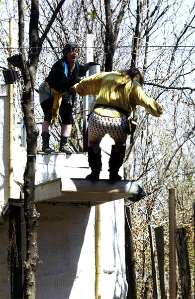 *   Crunch dives off the tower, not because he missed Port, it's because he wanted to escape from Port's skid marks.